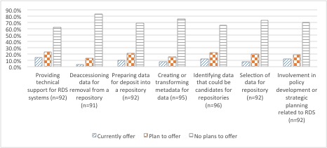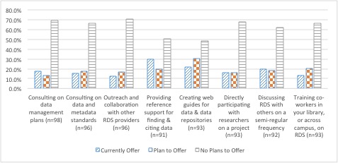 Objectives: The primary objectives of this study are to gauge the various levels of Research Data Service academic libraries provide based on demographic factors, gauging RDS growth since 2011, and what obstacles may prevent expansion or growth of services.