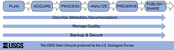 Faundeen, J. L. & Hutchison, V. B., (2017) “The Evolution, Approval and Implementation of the U.S. Geological Survey Science Data Lifecycle Model”, Journal of eScience Librarianship 6(2): 4. doi: https://doi.org/10.7191/jeslib.2017.1117