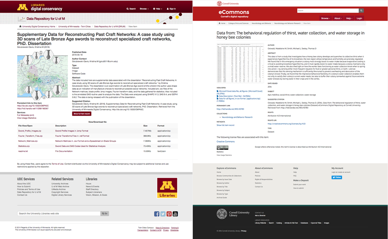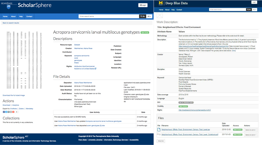 Johnston, L. R., Carlson, J. R., Hswe, P., Hudson-Vitale, C., Imker, H., Kozlowski, W., Olendorf, R. K. & Stewart, C., (2017) “Data Curation Network: How Do We Compare? A Snapshot of Six Academic Library Institutions’ Data Repository and Curation Services”, Journal of eScience Librarianship 6(1): 3. doi: https://doi.org/10.7191/jeslib.2017.1102