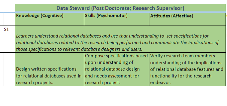 Sapp Nelson, M. R., (2017) “A Pilot Competency Matrix for Data Management Skills: A Step toward the Development of Systematic Data Information Literacy Programs”, Journal of eScience Librarianship 6(1): 1. doi: https://doi.org/10.7191/jeslib.2017.1096
