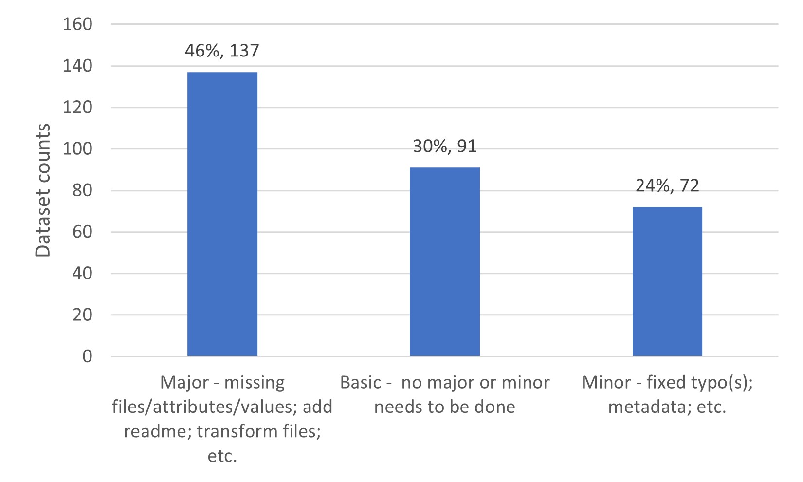 Results and Conclusions: The curatorial services polish and improve the datasets, which contributes to the spirit of data reuse. Although we continue to see challenges in our processes, curation makes a positive impact on datasets. Continued development and adaptation of the technical infrastructure allows for an ever-better experience for the curators and users. These improvements have helped our repository more effectively support the data sharing process by successfully fostering depositor engagement with curators to improve datasets and facilitating easy transfer of very large files.