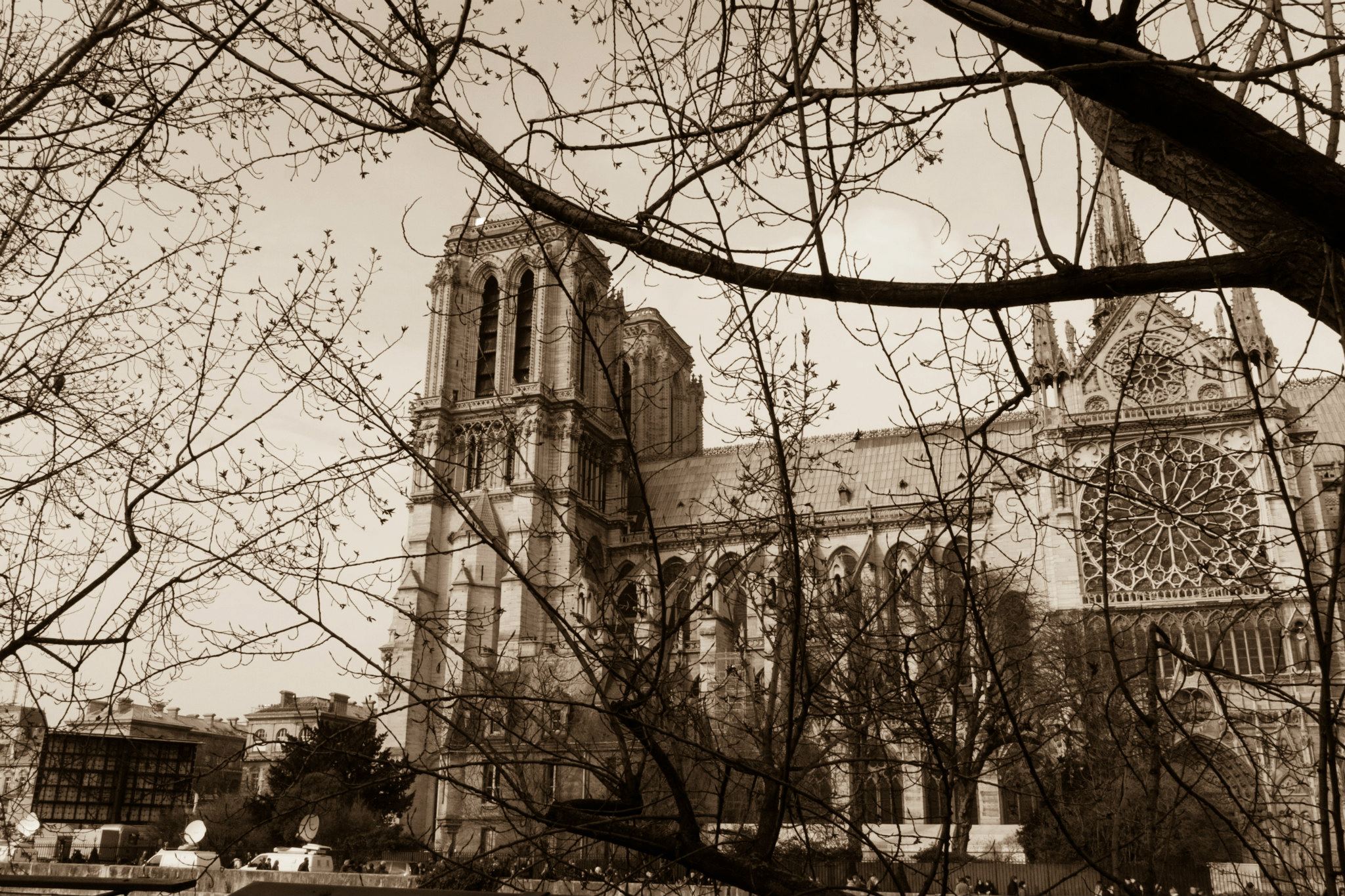 Notre Dame Cathedral from the other side of the Seine river (Paris, France)