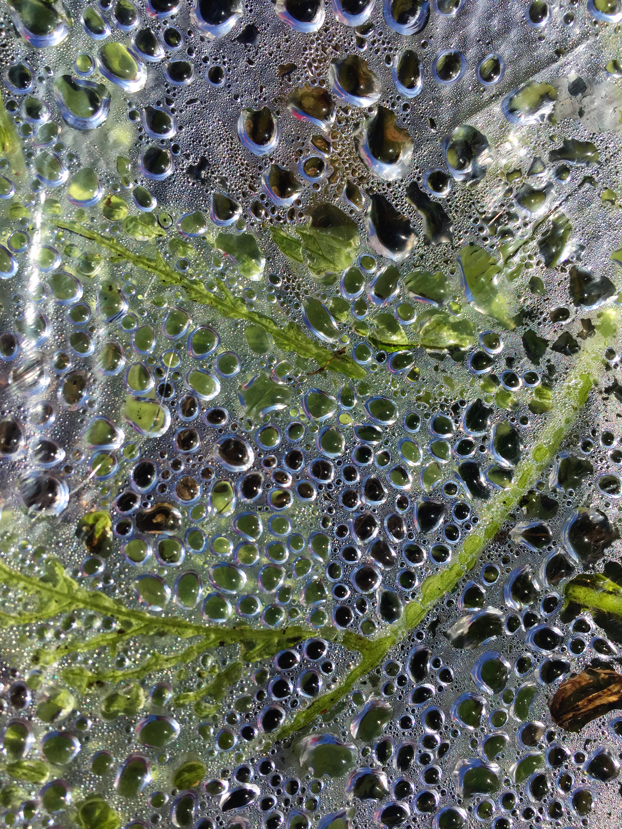 Leaf bag: on a rainy day in Greenville NC I noticed the wet clippings from someone’s yard in a bag. The pattern of the water droplets caught my eye.